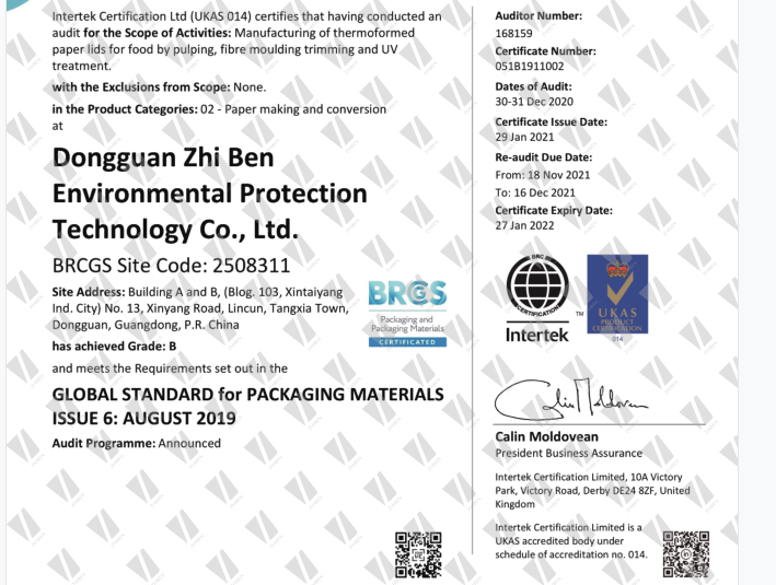 祝賀東莞市植本環保科技有限公司通過2021年度ITS BRC認證B級