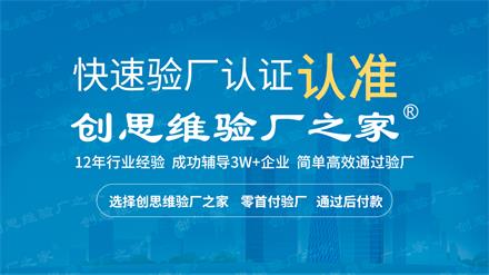CSW創思維驗廠之家網專業從事客戶驗廠、認證咨詢、輔導培訓,價格公道,服務優良,秉承創新、高效、專業、務實企業精神。“咨詢+輔導+考勤"”一站式服務保姆式輔導,全方位實時跟蹤,多年來成功幫助上萬家企業順利通過驗廠,在行業中有口皆碑!