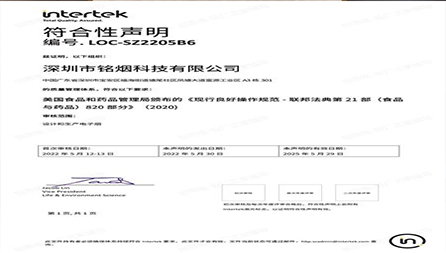 本文來源:驗廠之家網 - 祝賀深圳市銘煙科技有限公司2022年一次性成功通過電子霧化GMP 820認證
