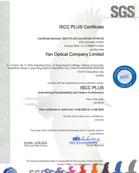 祝賀深圳鑫山姆光學有限公司2022年一次性成功通過ISCC認證