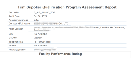 本文來源:驗廠之家網 - 祝賀HONGKONG俊文(越南)有限公司2023年一次性成功通過ITS-TQP驗廠審核并且獲得94分