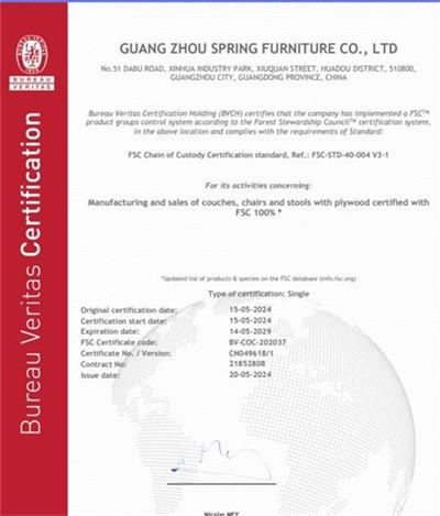 本文來源:驗廠之家網 - 祝賀廣州斯普睿家具有限公司2024年一次性成功通過BV-FSC森林認證