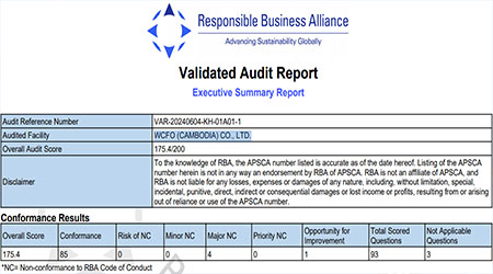 祝賀華耀(柬埔寨)有限公司 WCFO (CAMBODIA) CO., LTD. 2024年一次性成功通過RBA認證并順利取得銀牌