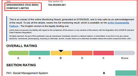 祝賀越南工廠GREENWORKS (THAI BINH) COMPANY LIMITED格力博 2025年一次性成功通過(guò)BSCI驗(yàn)廠