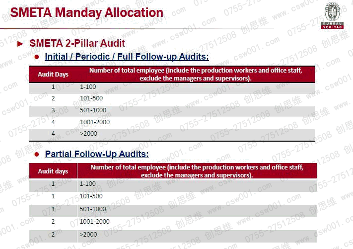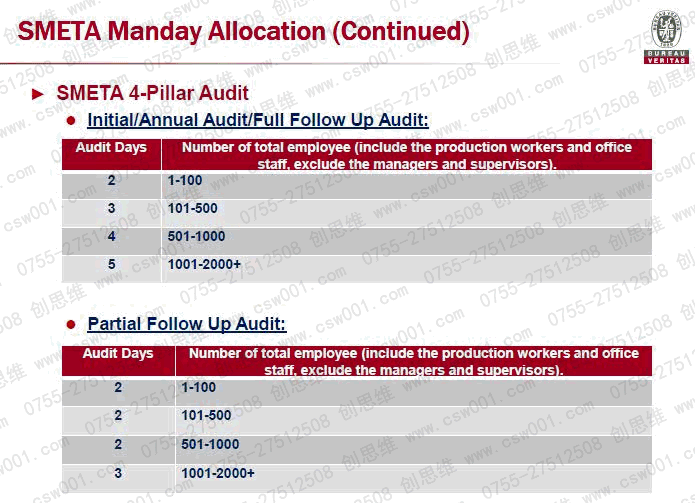 SMETA/SEDEX驗廠2P和4P審核的人天表區(qū)別