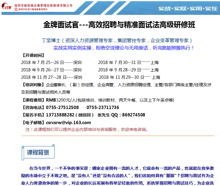 金牌面試官--高效招聘與精準面試法高級研修班培訓課程: