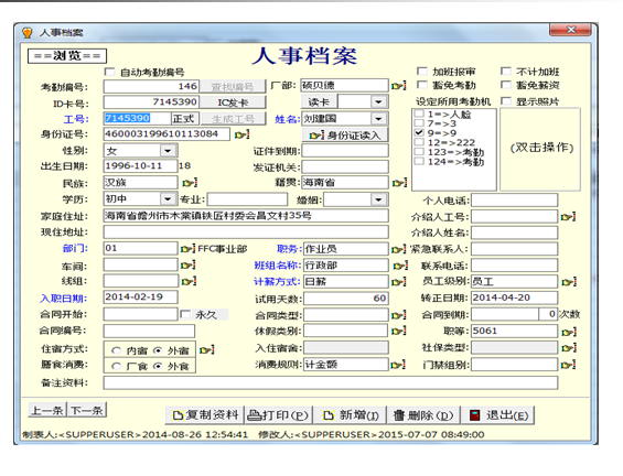 1.人事檔案資料只需要在真帳錄入一次,在驗廠帳套就可以自由設定驗廠員工名單;設定驗廠名單,系統會自動屏蔽員工的出勤及打卡記錄.
