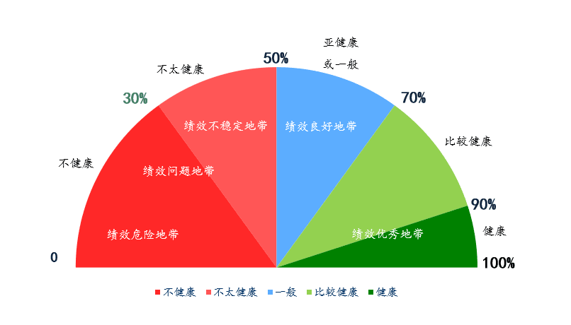 從組織的健康度來看,往往很多企業(yè)處于亞健康狀態(tài),處于績效不穩(wěn)定地帶。公司高層應(yīng)當(dāng)高度重視并逐步提升組織健康度,對組織內(nèi)部進行提升改善,修內(nèi)功煉,為公司經(jīng)營業(yè)績的提升打下堅實的內(nèi)部基礎(chǔ)。組織健康度量表如下圖: