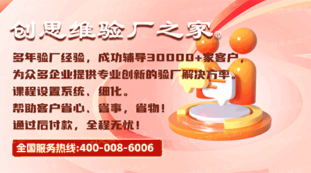 如果企業想做驗廠輔導,不妨考慮一下創思維驗廠之家,創思維驗廠之家是專業的驗廠輔導公司,已經為全國各地上萬家企業服務過,在全國多處設有辦事處,會就近安排老師進場輔導,我們的輔導原則是幫助企業通過驗廠,深圳市創思維是一家正規專業的驗廠咨詢、驗廠輔導、認證輔導公司,一切以合同條款為準,不亂收費,并盡可能為企業節約成本,通過后付款!