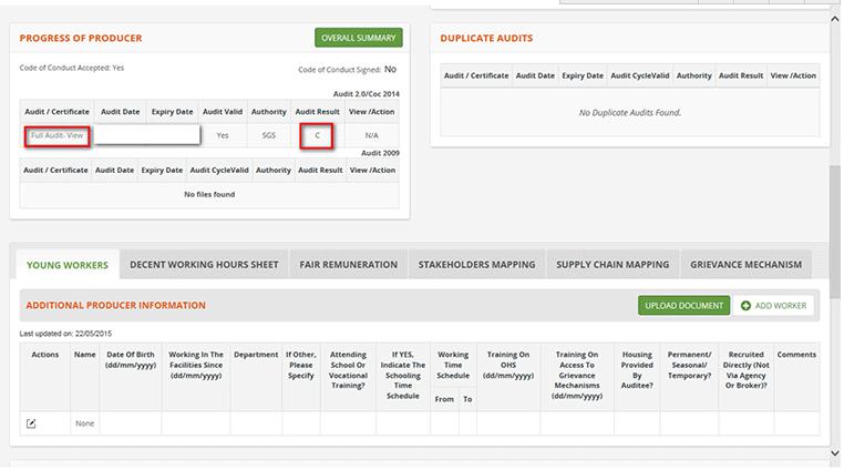 向下滑動鼠標,找到 Progress of Producer 部分,根據你所知的審核日期和審核類型,點擊 Audit/Certificate 目錄下相應的審核類型以進入報告界面。點擊后,界面將會跳到你所找的報告界面,即可查看報告。